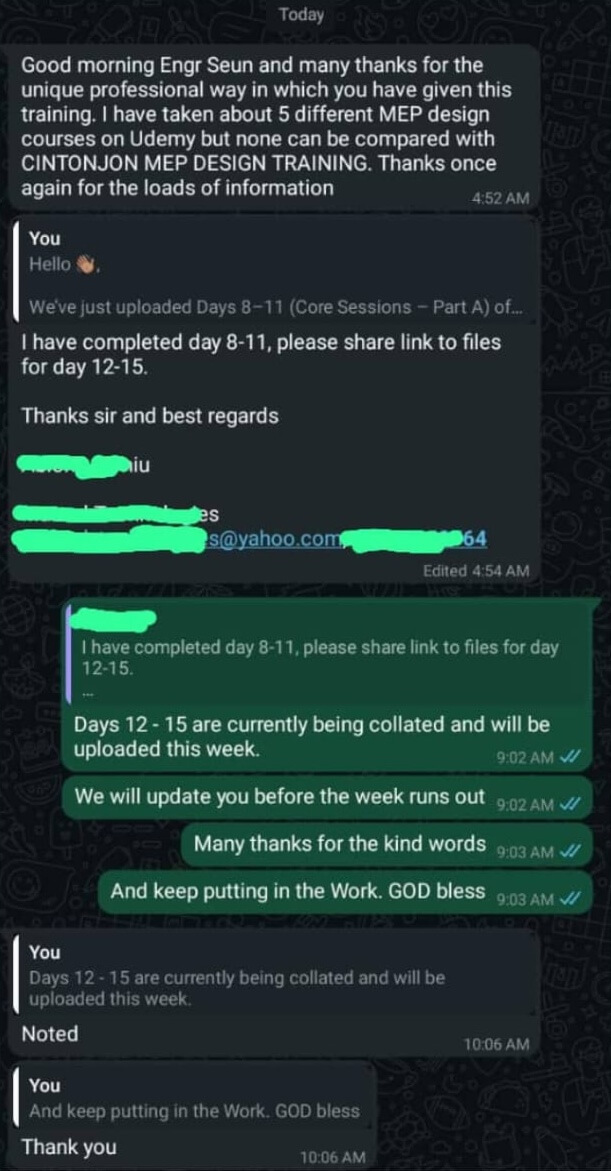 Real feedback from engineers and designers who attended the free webinar and took our MEP training. Click any image to read their full story, then register above to start yours.